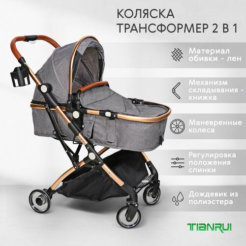 Коляска трансформер для новорожденных Tianrui 2 в 1, с дождевиком и москитной сеткой, коляска прогулочная