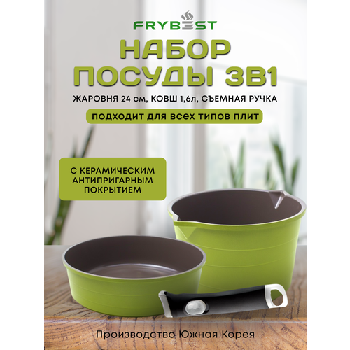Набор посуды Oliva от Frybest - Ковш 1,6 л и Жаровня 24 см со съемной ручкой и крышкой для всех типов плит