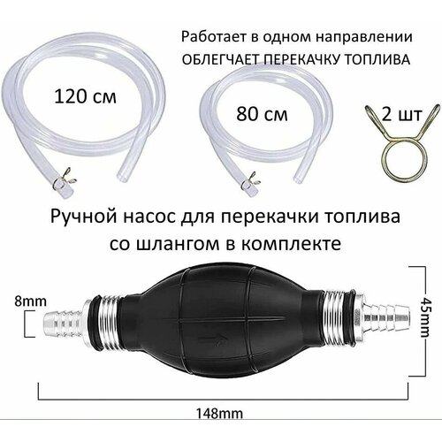 Шланг и насос груша перекачки топлива 2 хомута, полиуретан, 8 мм