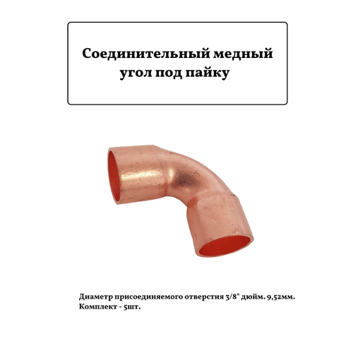 Соединительный медный угол под пайку 3/8" 9,52мм. 5шт.