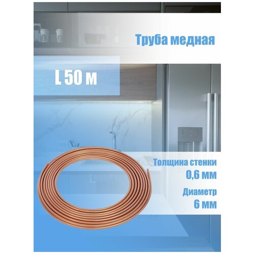Труба/трубка медная 6х0,6/0,65мм, бухта 50м