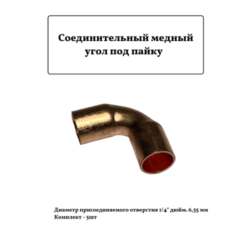 Соединительный медный угол под пайку 1/4" 6,35мм 5шт.