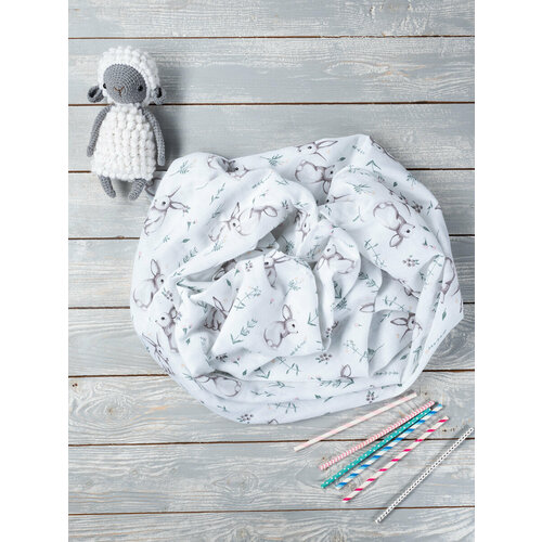 Пеленки муслиновые для новорожденных 1 шт 130х130 см "Зайчата" на выписку, на крещение