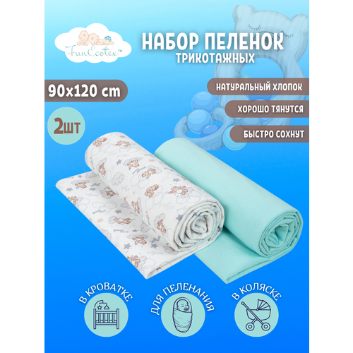 Пеленки для новорожденных трикотажные 2 шт 90х120/мятный