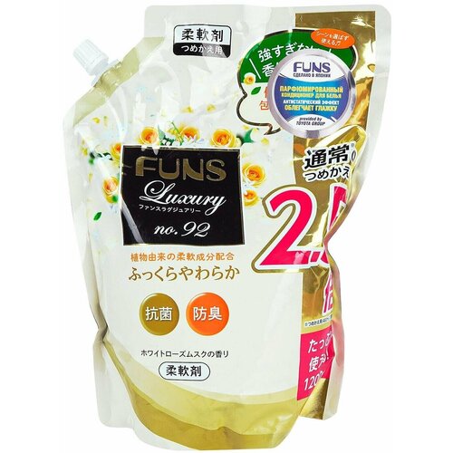 Funs Luxury Концентрированный кондиционер для белья, аромат белой розы и жасмина, мягкая упаковка, 1200 мл
