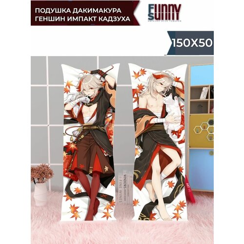 Подушка-обнимашка Дакимакура, с подушкой и наволочкой по игре: Геншин Импакт, Кадзуха 150х50 см