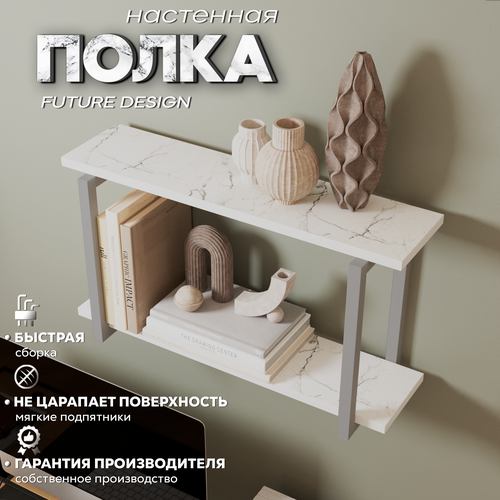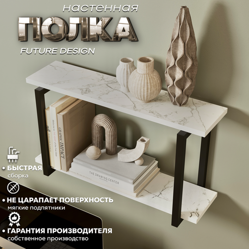 Полка настенная навесная, белый мрамор/черный, 64х34х20