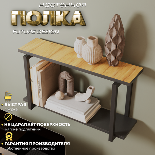 Полка настенная навесная, дуб золотой/черный, 64х34х20