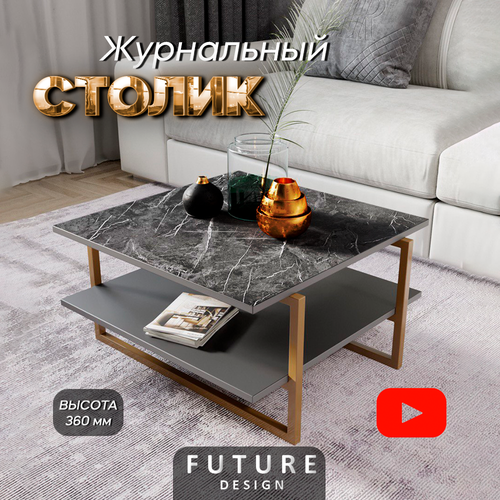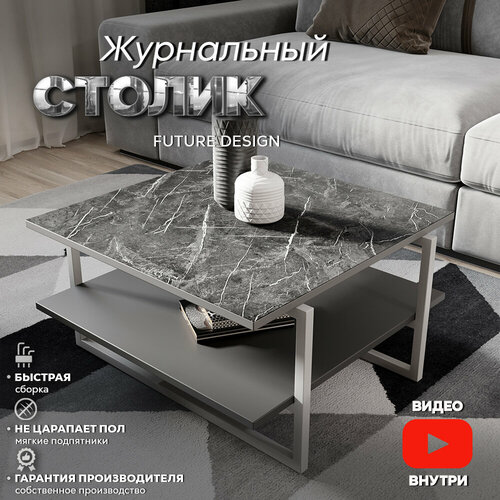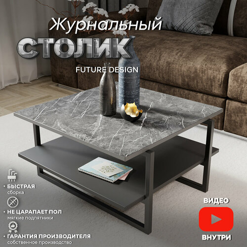 Журнальный столик лофт кофейный прикроватный для гостиной Moon Черный мрамор / Серый