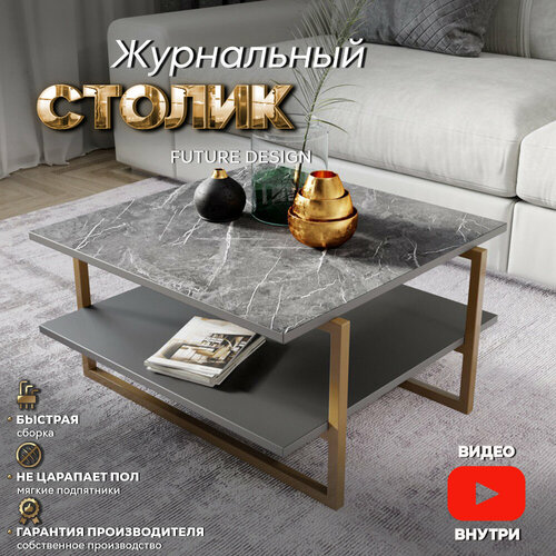 Журнальный столик лофт кофейный прикроватный для гостиной Moon Мрамор/Золото