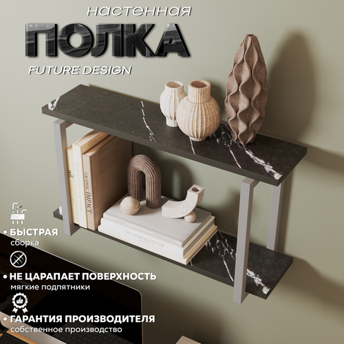 Полка настенная навесная, черный мрамор/серый, 64х34х20