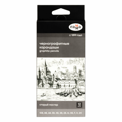 Набор чернографитных карандашей Гамма, 12шт, 10B-2H