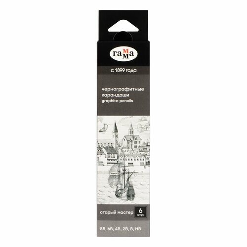 Набор чернографитных карандашей Гамма, 6 шт, 8B-HB