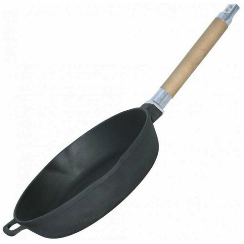 Чугунная сковорода высокая 6,6 см для индукционной плиты со съемной ручкой 26 см Гардарика, для любых плит газ электро индукция открытый огонь, мангал