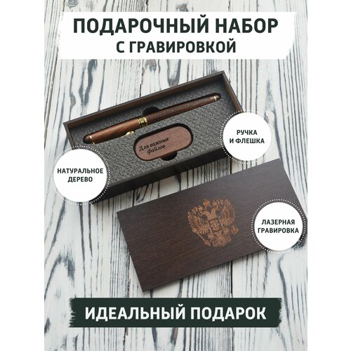 Подарочный набор с ручкой и USB флешкой из дерева с гравировкой