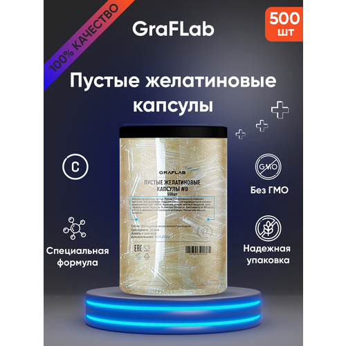 GraFLab, Капсулы желатиновые пустые для лекарств размер 0 прозрачные 500 шт.