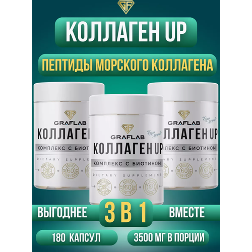 GraFLab, Морской коллаген, Collagen UP, 3 банки по 60 капсул