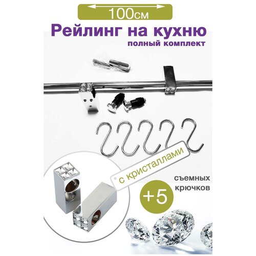 Рейлинг для кухни 60 см с 5 крючками GreenDax R600-1N-SW хром с кристаллами