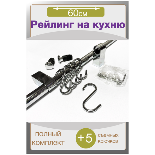 Рейлинг для кухни 60 см с 5 крючками GreenDax R600-1S хром