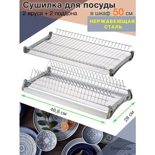 Сушилка для посуды двухуровневая в шкаф 50 см, 46.8 см х 28 см х 11 см