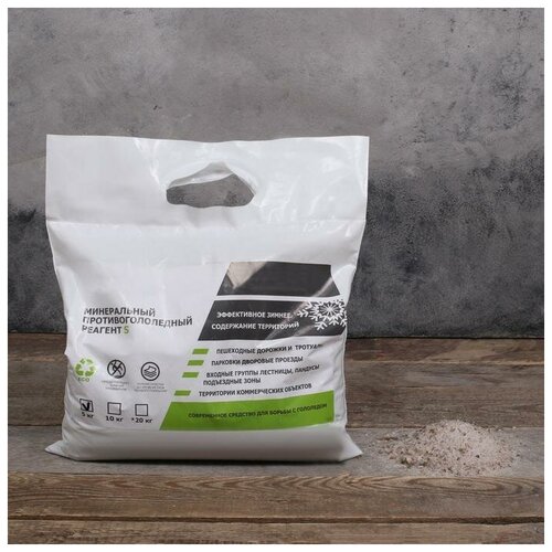 Greengo Реагент антигололёдный S (соль техническая), 10 кг, работает при — 15 °C, в пакете