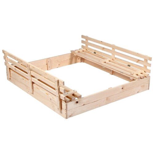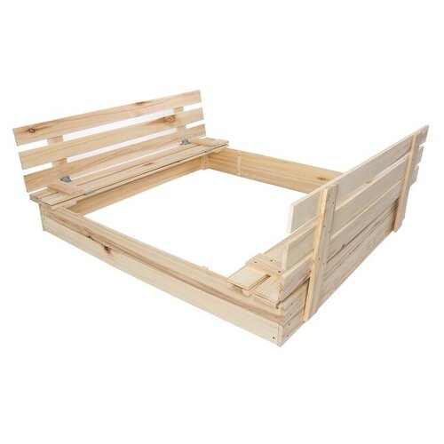 Greengo Песочница деревянная, без крыши, 150 × 140 × 18 см, без покраски, лавочки (2 шт.), Greengo