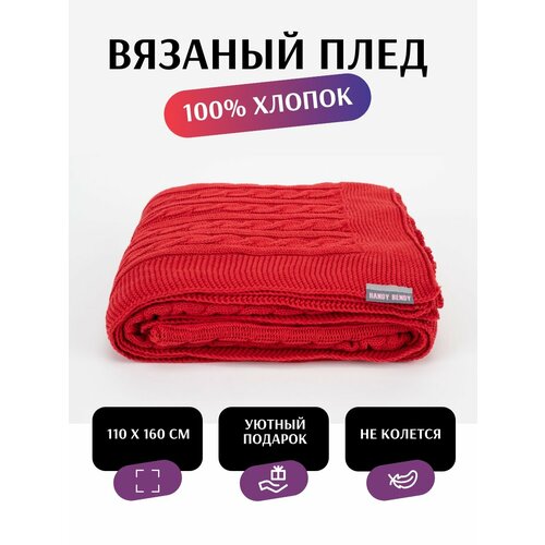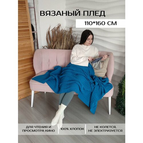 Вязаный плед из 100% хлопка, 110х160 см, голубой