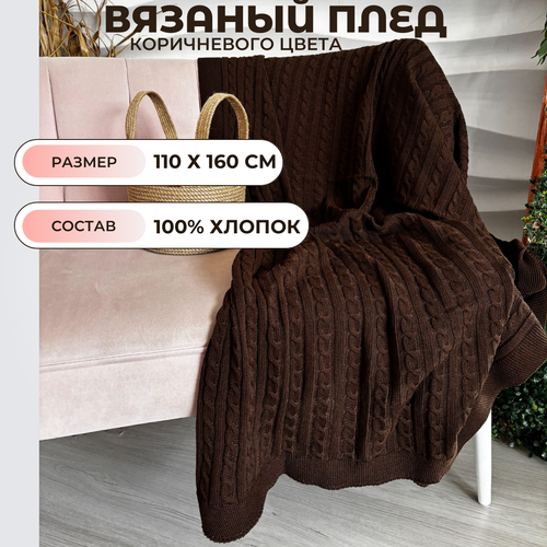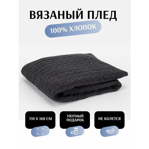 Вязаный плед из 100% хлопка, 110х160 см, темно-серый
