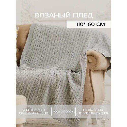 Вязаный плед из 100% хлопка, 110х160 см, светло-серый