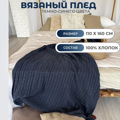Вязаный плед из 100% хлопка, 110х160 см, джинс