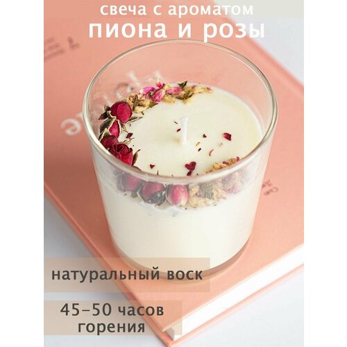 Свеча ароматическая кокосовая массажная в стакане, пион и роза