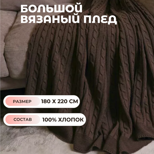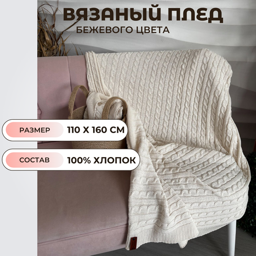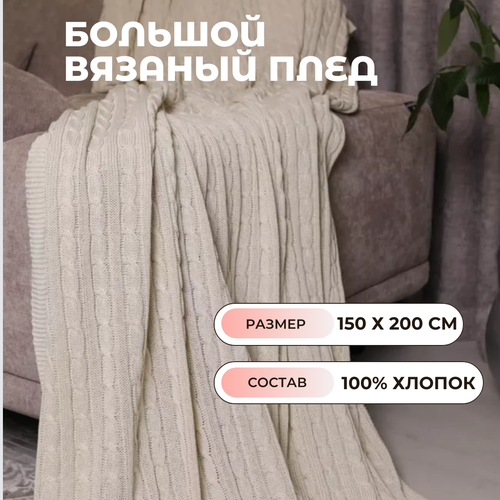 Вязаный плед из 100% хлопка, 180х220 см, бежевый