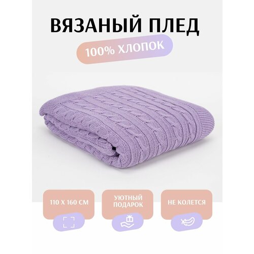 Вязаный плед из 100% хлопка, 110х160 см, сиреневый