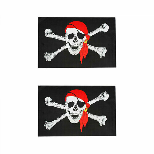 Флаг пиратский "Веселый Роджер" пират в бандане с повязкой, большой 60х90см (Набор 2 шт.)