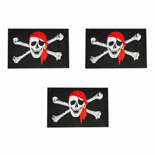 Флаг пиратский "Веселый Роджер" пират в бандане с повязкой, большой 60х90см (Набор 3 шт.)