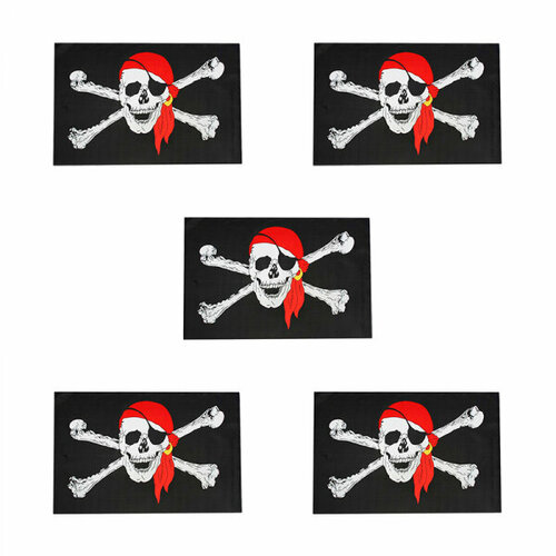 Флаг пиратский "Веселый Роджер" пират в бандане с повязкой, большой 60х90см (Набор 5 шт.)