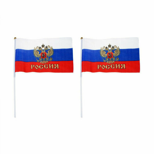 Флаг России с гербом, 20х28 см, шток (40 см), полиэстер (Набор 2 шт.)
