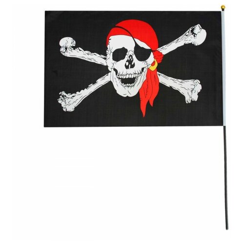 Флаг пиратский черный "Веселый Роджер" пират в бандане с повязкой, 14*21 см