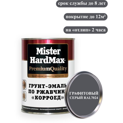 Грунт-эмаль 3 в 1 по ржавчине "корроед" MISTER HARDMAX RAL7024 Графитовый серый (0,9кг)