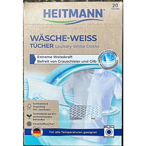 HEITMANN Салфетки для стирки белого белья с сильным отбеливающим эффектом 20шт в упаковке