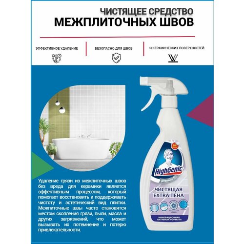 HIGHGENIC Чистящая Extra пена для всех поверхностей в ванной комнате,плитки и межплиточных швов 750