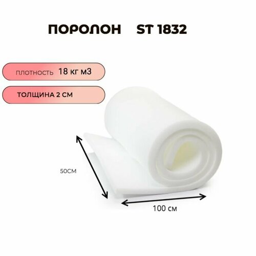 Поролон мебельный листовой ST 1832 50смx100смx20 мм; пенополиуретан плотность 18 кг/м3