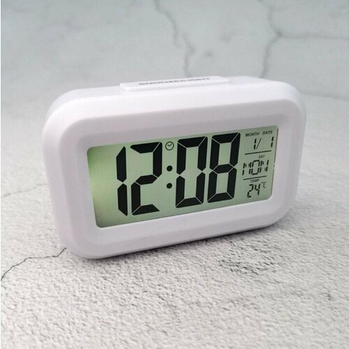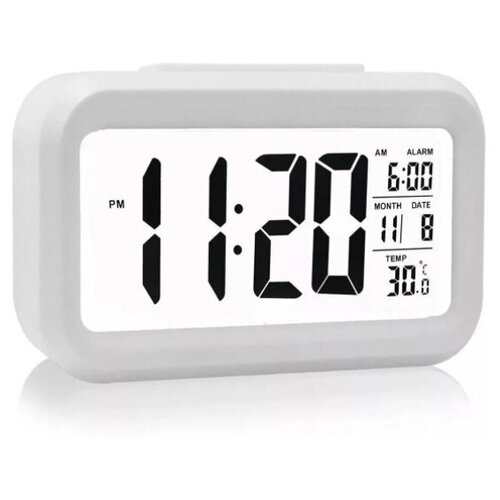 Светодиодный цифровой будильник, настольные часы для дома и офиса, подсветка, будильник, календарь, настольные часы DT-1861. Цвет корпуса Белый.