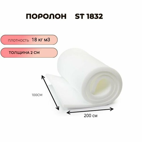 Поролон мебельный листовой ST 1832 100смx200смx20мм; пенополиуретан плотность 18 кг/м3