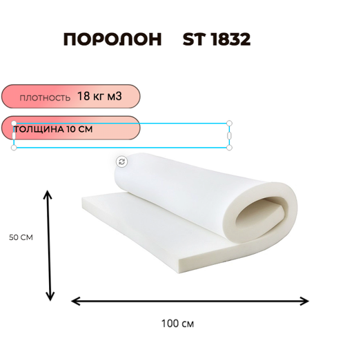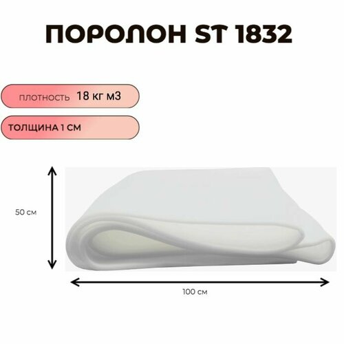 Поролон мебельный листовой ST 1832 50смx100смx10 мм; пенополиуретан плотность 18 кг/м3