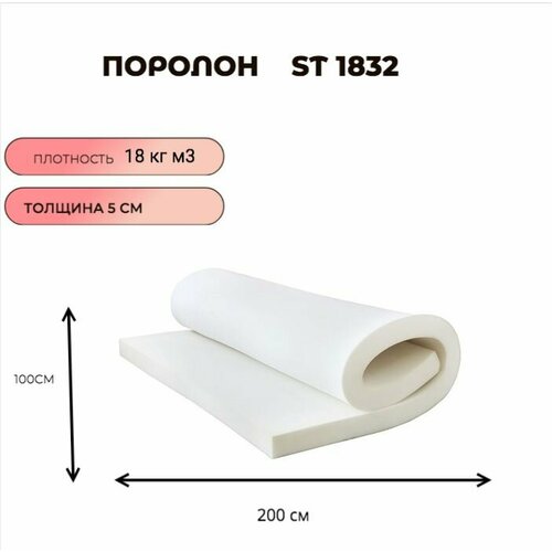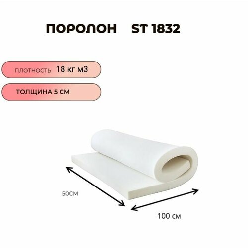 Поролон мебельный листовой ST 1832 50смx100смx100 мм; пенополиуретан плотность 18 кг/м3