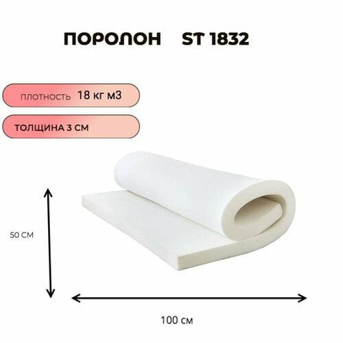 Поролон мебельный листовой ST 1832 50смx100смx30 мм; пенополиуретан плотность 18 кг/м3