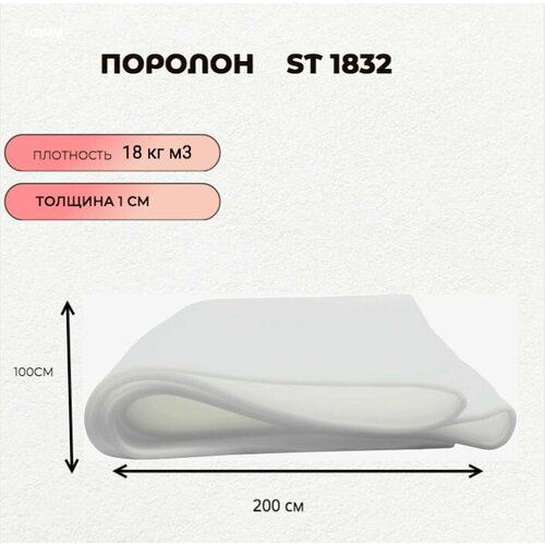 Поролон мебельный листовой ST 1832 100смx200смx10мм; пенополиуретан плотность 18 кг/м3