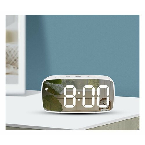 Настольные зеркальные электронные часы будильник. Корпус. Цифры белые.