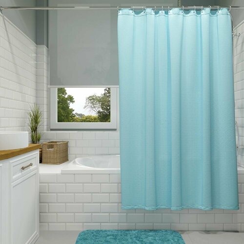 Штора для ванной текстильная 180х200 см голубая Жаккард